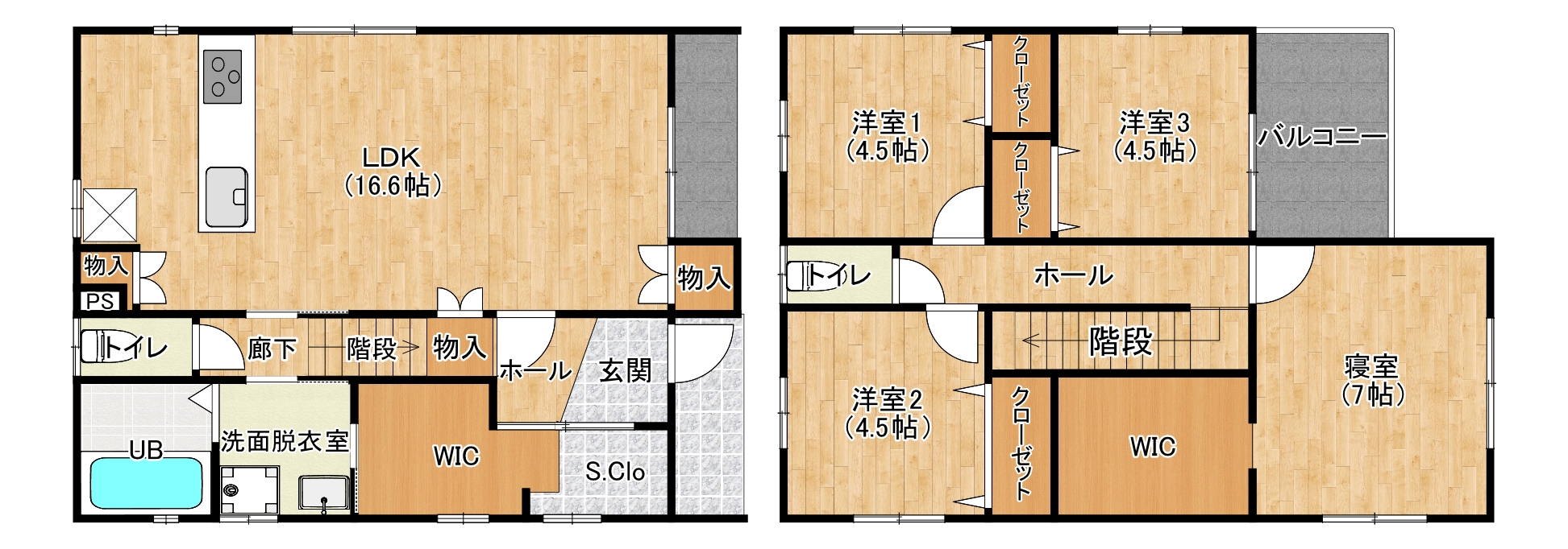 ・各階ウォークインクローゼット付きで収納充実